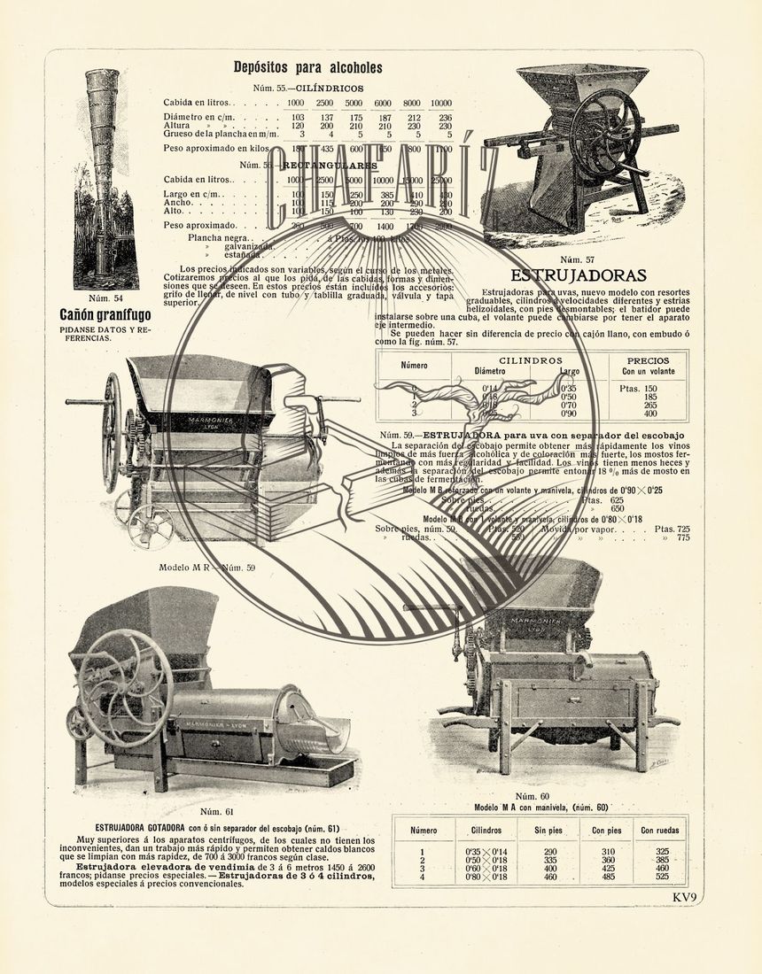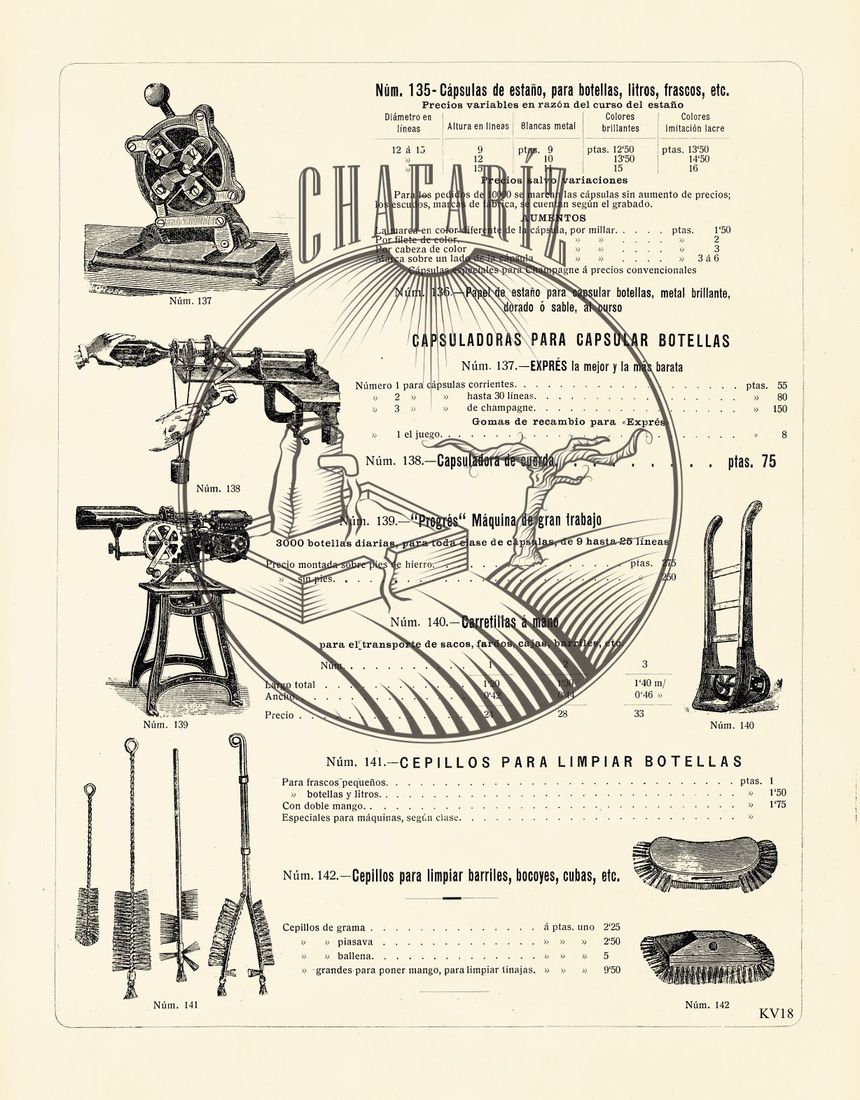 Agricultura, ganadería, viticultura, máquinas vitivinícolas y artículos para bodegas del S.XX